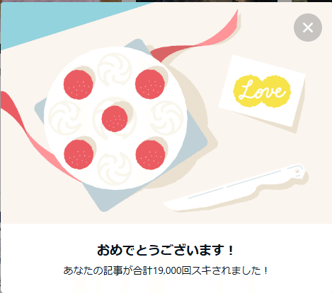 19,000スキの通知が届きました。沢山のスキ、ありがとうございます。